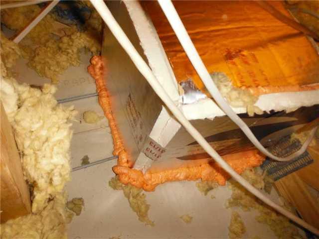 Sealing the can lights is a crucial step in preventing air flow and heat loss in a home. You would be amazed at the amount of heat that can escape through these poorly insulated lighting systems. This is a specially designed insulating can light box sealed with fire caulk for safety purposes.