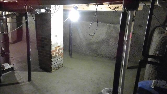 In order to avoid the further degradation of the crumbling stone wall (and the likelihood it would take the house down with it) we framed and installed a new wall with shotcrete. Shotcrete will never be as pretty as a poured wall, but it's an excellent way to restore structural integrity to your home without the time consuming, dangerous, and costly process of lifting the house to pour new walls.
