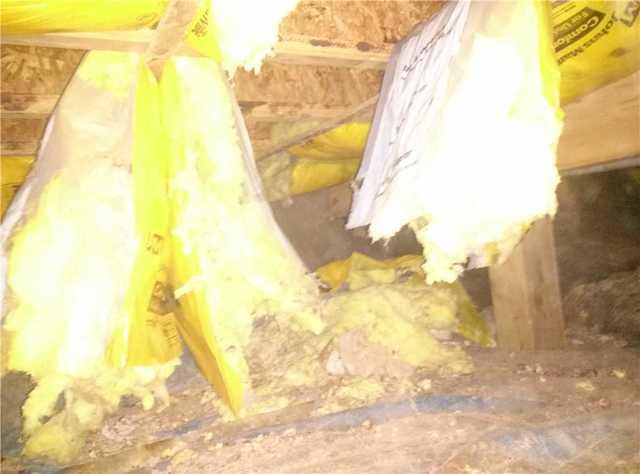 These homeowners were experiencing extremely cold floors due to ineffective insulation. The high moisture levels in the crawl space caused the fiberglass insulation to become saturated with water, causing it to fall. The organic materials in this type of insulation are also susceptible to mold growth.